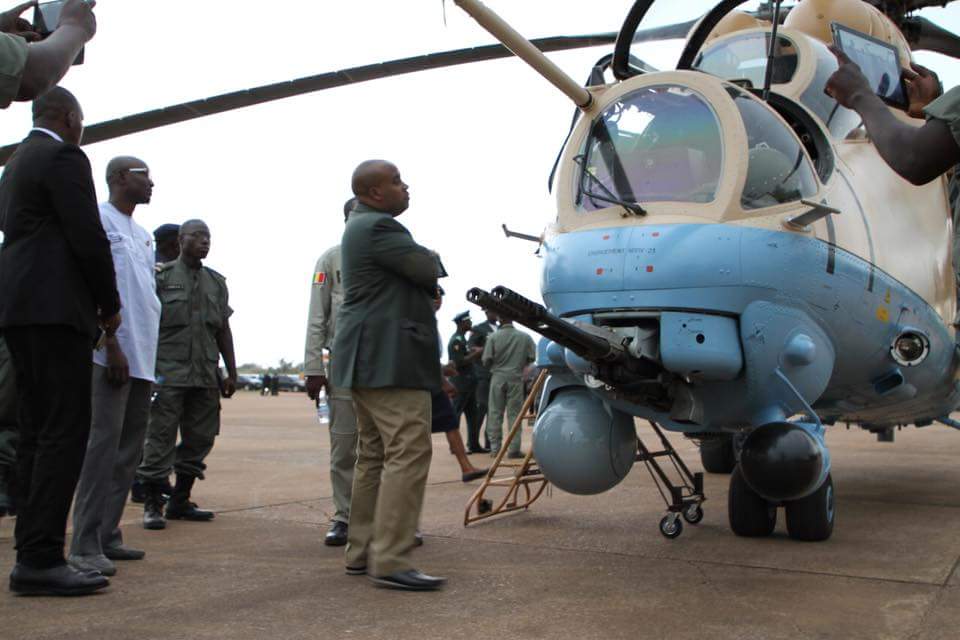 Ibrahim Boubacar Keïta, presidente de la República de Mali, inspeccionó el pasado día 3 de octubre las nuevas unidades adquiridas por la fuerza aérea del país en el sector militar del aeropuerto internacional Bamako-Sénou. Se pudo ver una pareja de helicópteros de ataque Mil Mi-35M, entregados en septiembre por Rusia. Al parecer, Mali habría encargado un total de cuatro. Además, se vio por primera vez dos aviones de transporte ligero Y-12 Turbo Panda, de origen chino.